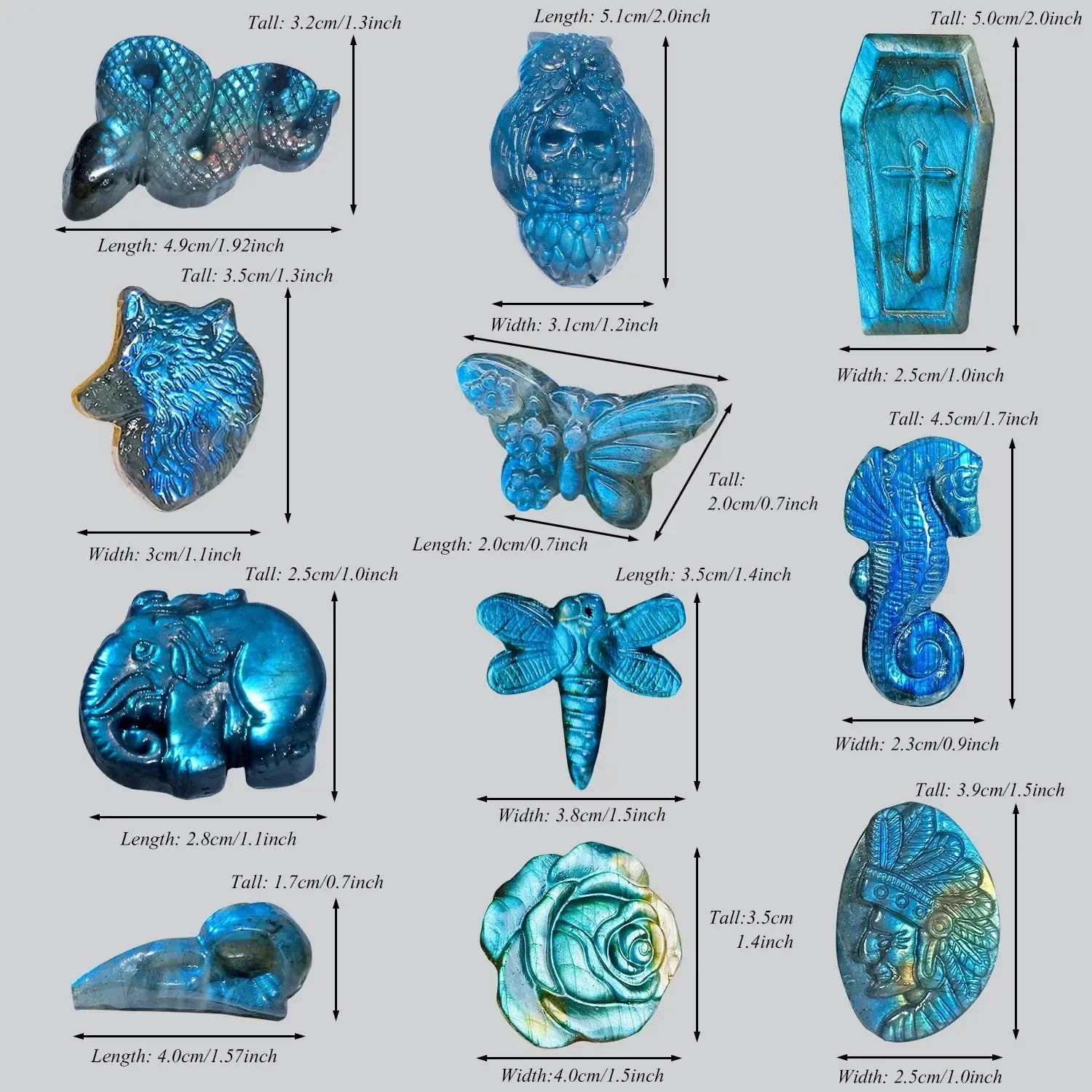Flashy Labradorite Animal Carvings-Carvings-Ali-Chief-See Chart-Crystal Destiny