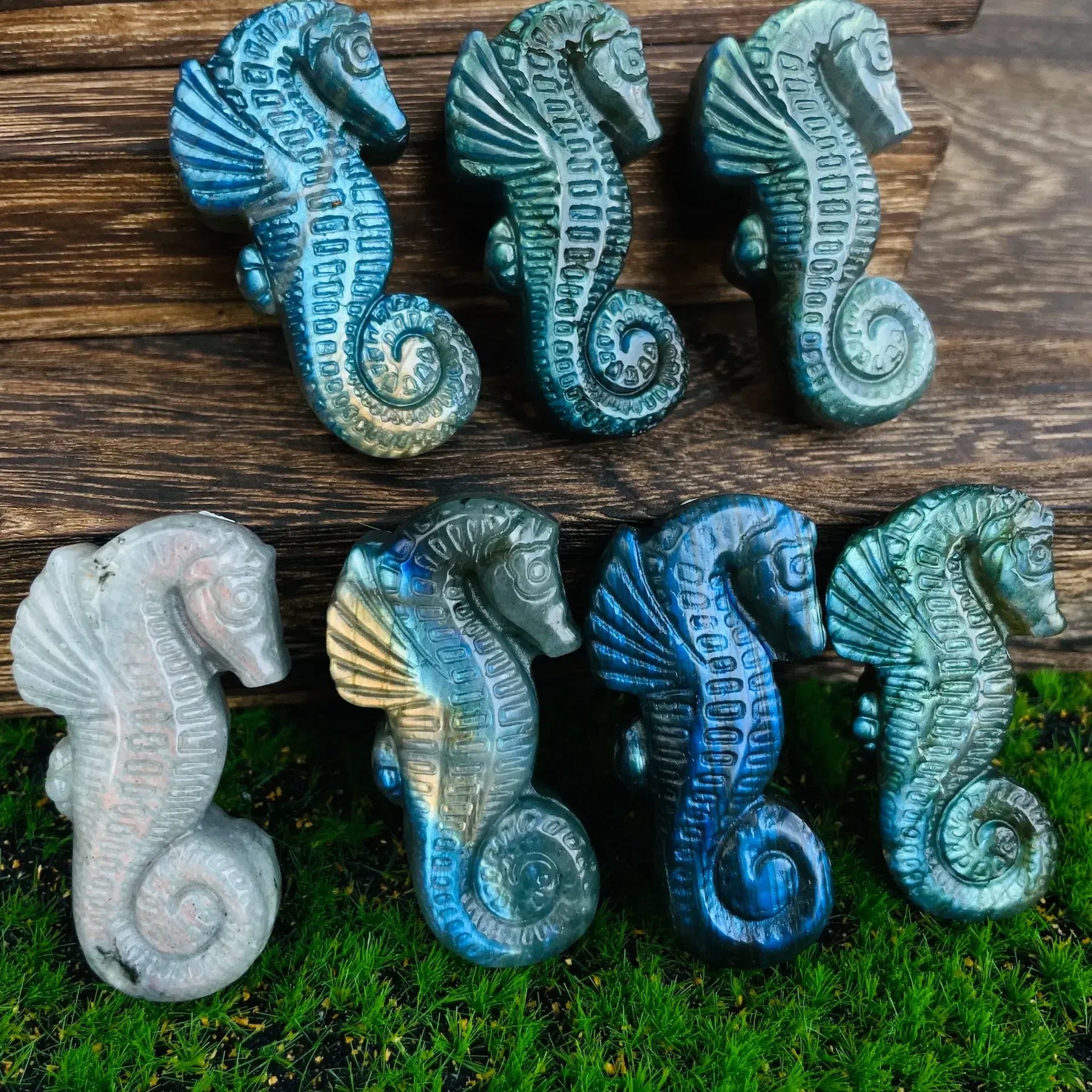 Flashy Labradorite Animal Carvings-Carvings-Ali-Sea Horse-See Chart-Crystal Destiny