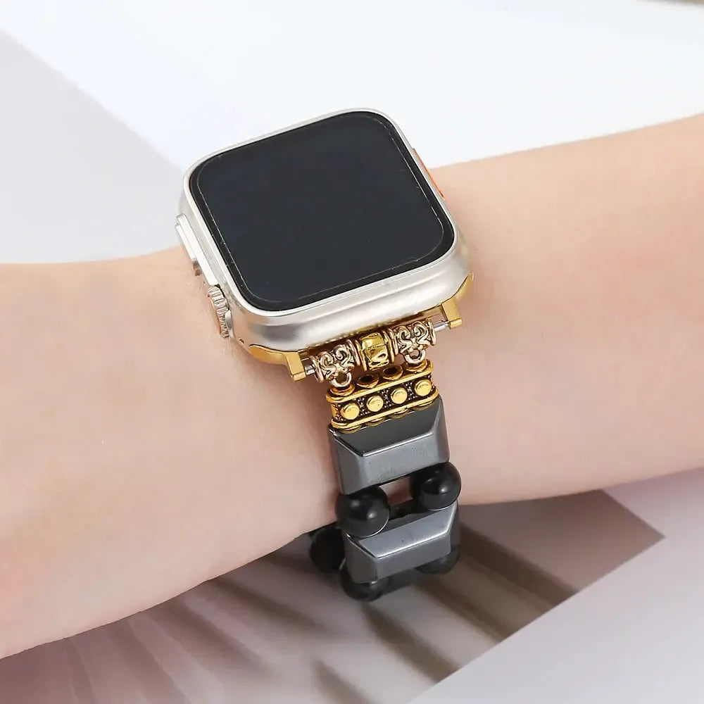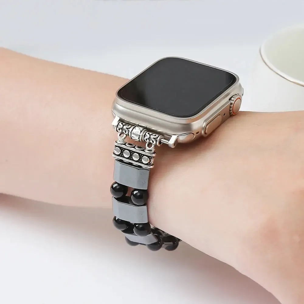 Hematite Beaded Natural Stone Apple Watch Bands-Bands-Ali-Trapezoid-Golden-Small-Apple 38-41MM Plate-Crystal Destiny