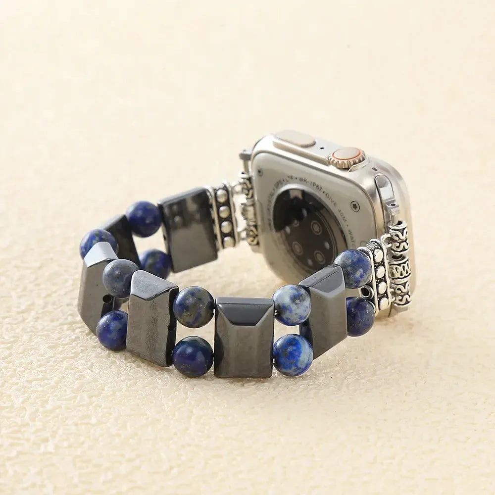 Hematite Beaded Natural Stone Apple Watch Bands-Bands-Ali-Blue-Silver-Small-Apple 38-41MM Plate-Crystal Destiny