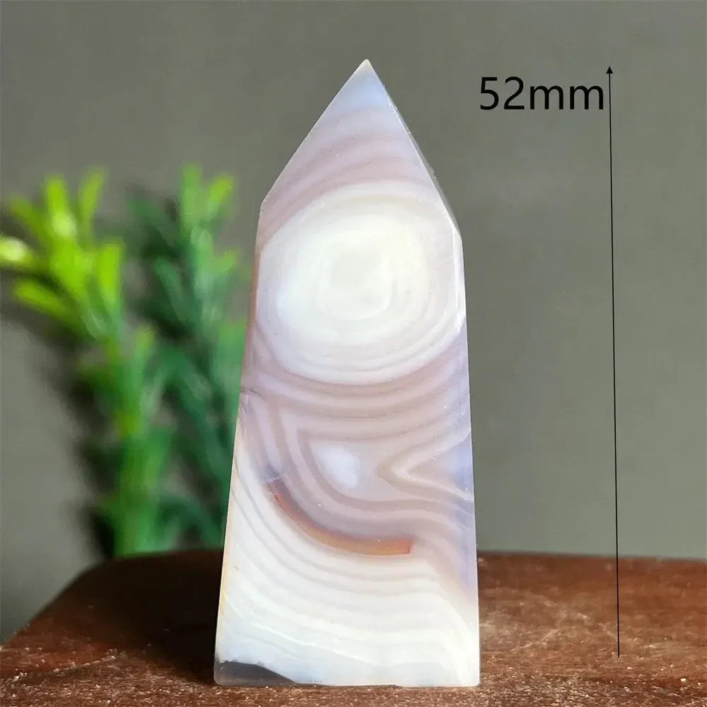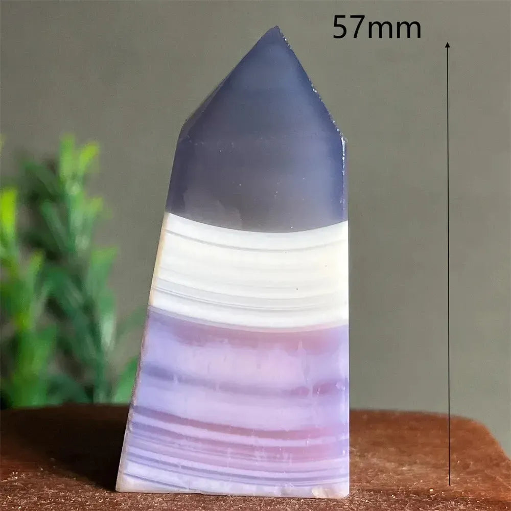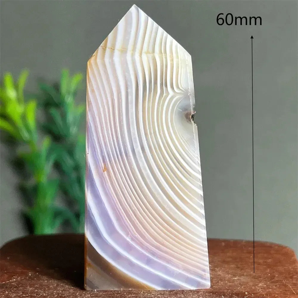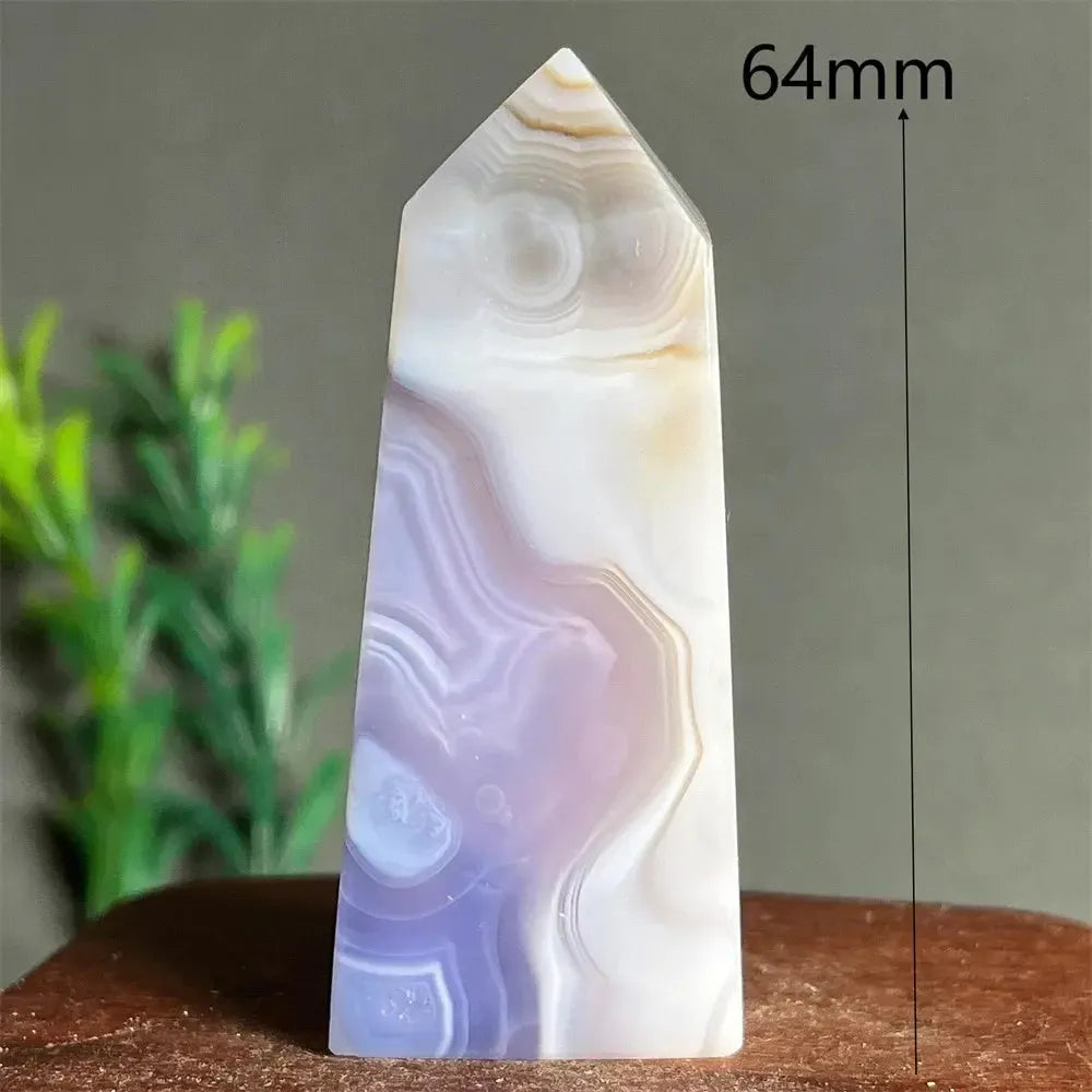 These Lace Amethyst Agate Crystal Towers feature delicate natural banding and soft purple hues, polished to highlight the intricate lace-like patterns of the stone. Combining the stabilizing energy of agate with the spiritual clarity of amethyst, these towers are ideal for meditation, display, or adding a touch of natural elegance to your space.