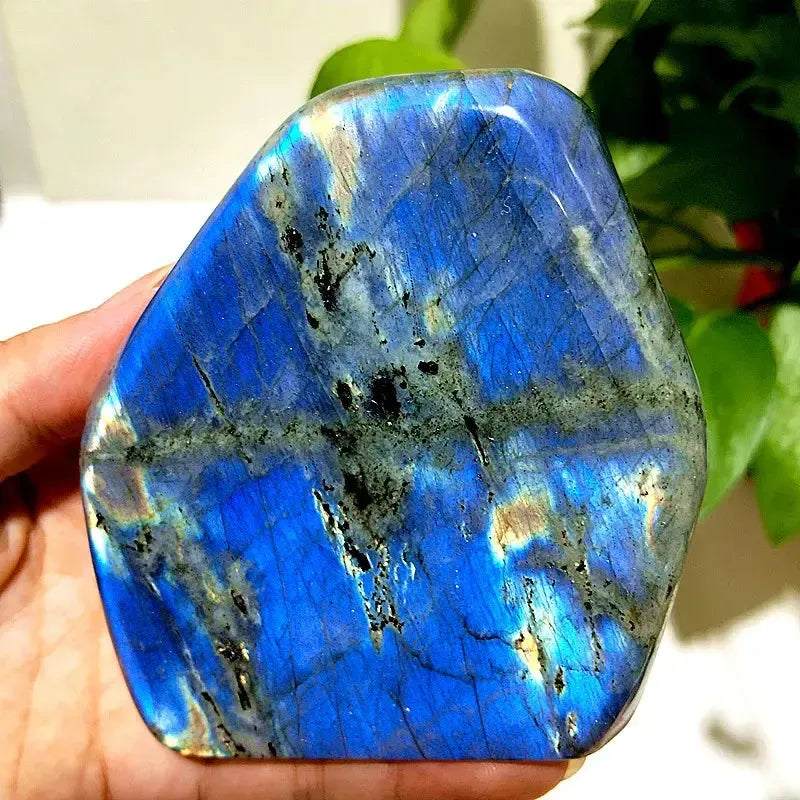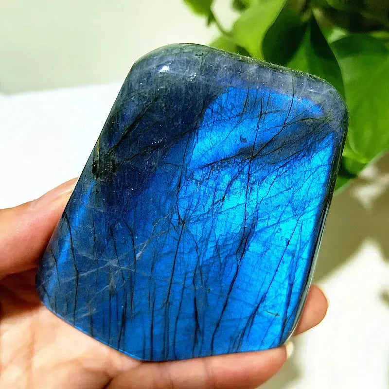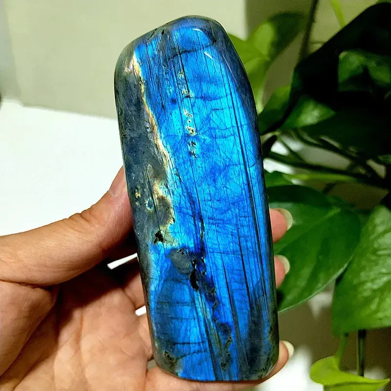 This Blue Labradorite Crystal Freeform displays stunning flashes of blue and green iridescence across its natural, polished surfaces. Each piece is uniquely shaped, making it perfect for display, meditation, or crystal grids.