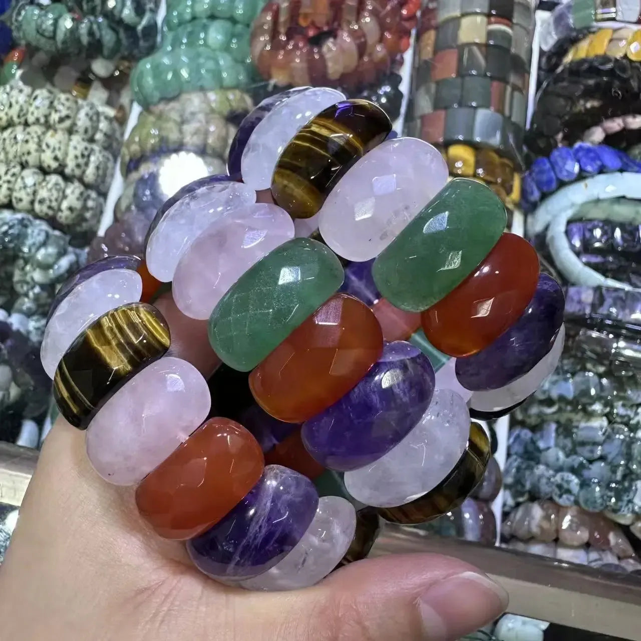 Natural Stone Flat Rondelle Beads Bracelets in 6 Materials