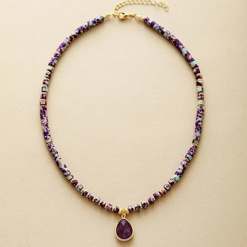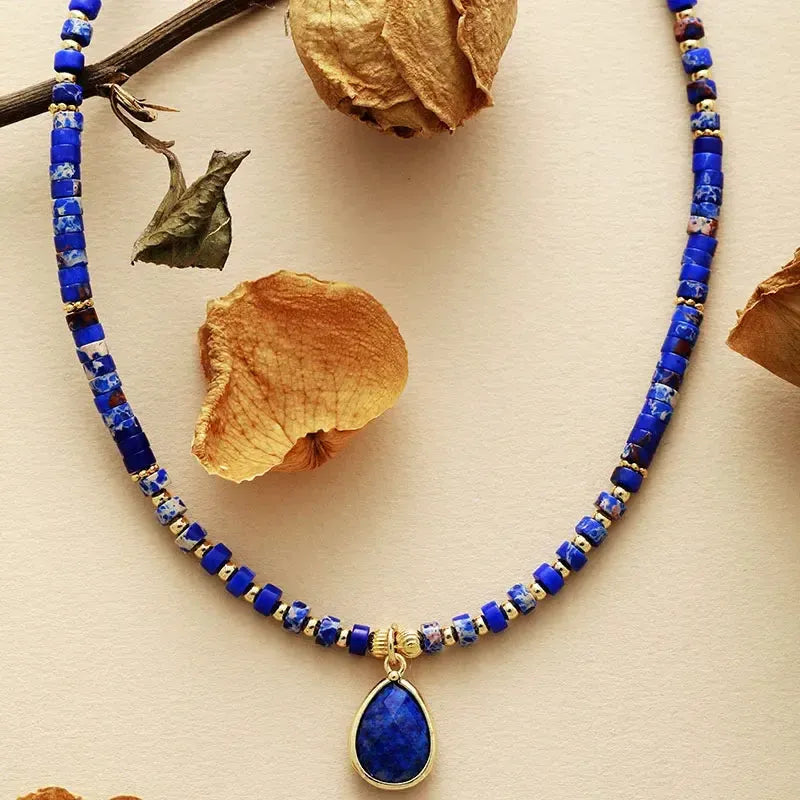 Natural Stone Teardrop Choker Necklaces-Necklaces-Ali-Lapis Lazuli-16" Long-Crystal Destiny