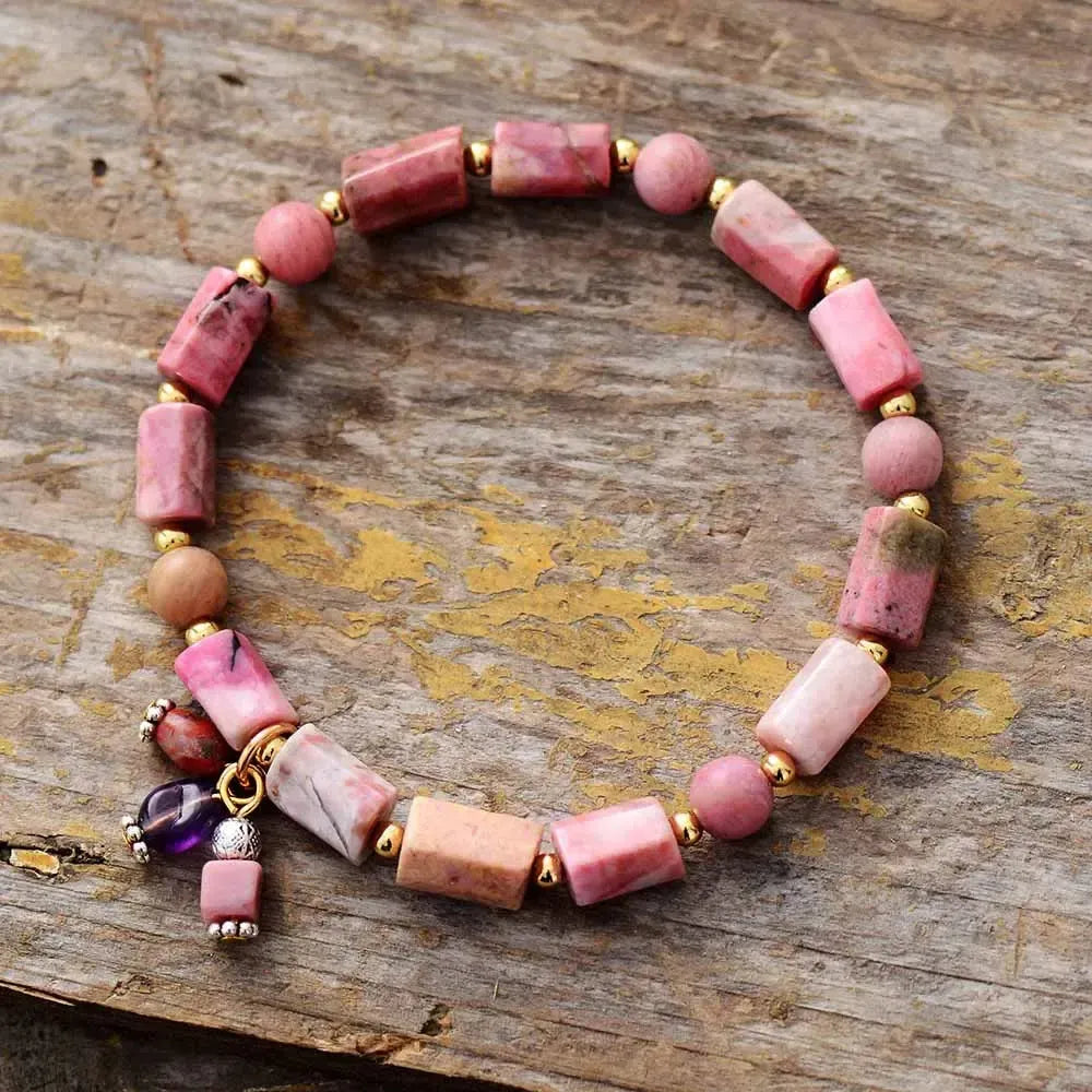 Rhodonite or Amazonite Beaded Stretch Bracelet-Bracelets-Ali-Rhodonite-185mm-Crystal Destiny