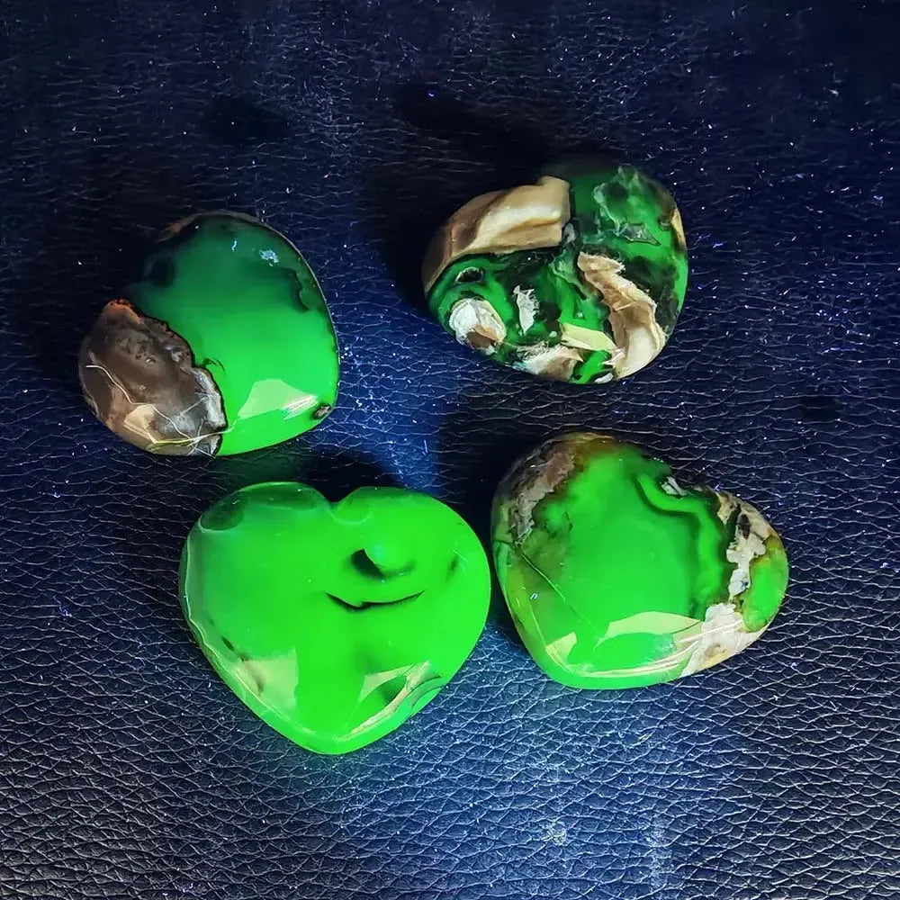 These Volcano Agate Crystal Hearts features rich, earthy tones with natural banding and striking patterns that capture the dynamic energy of volcanic stones. Polished to a smooth finish, each heart is UV-reactive, revealing hidden colors and details under blacklight, making it a unique and mesmerizing piece for collectors and crystal enthusiasts.