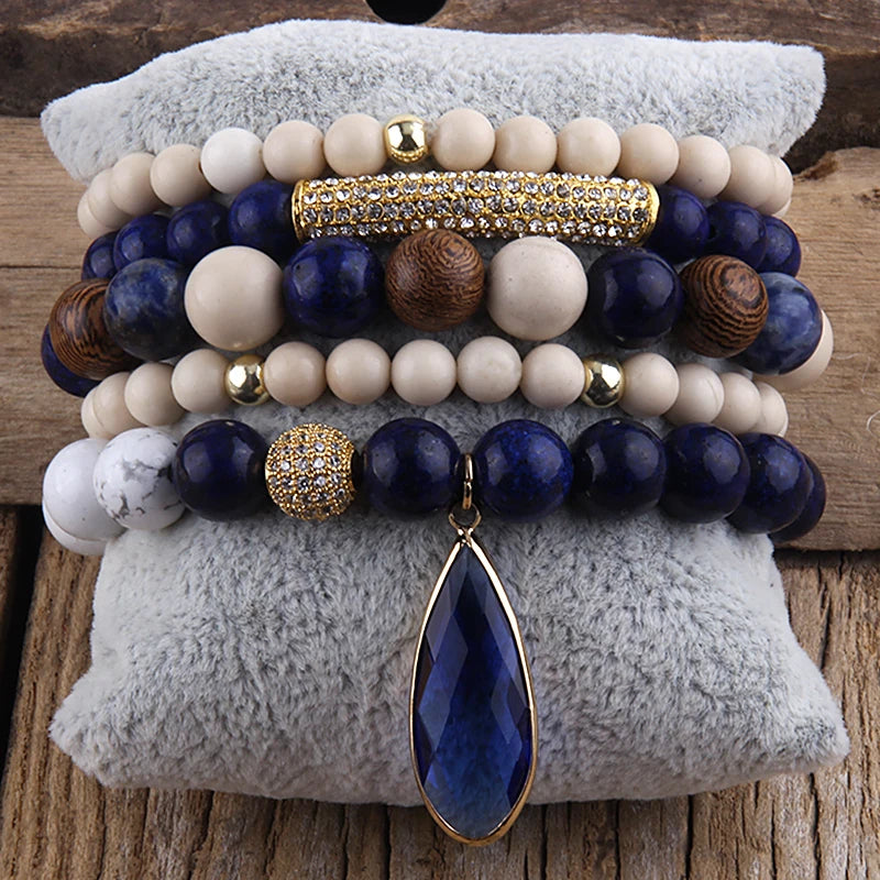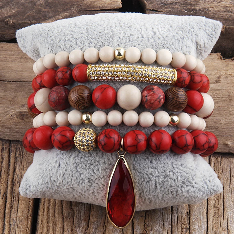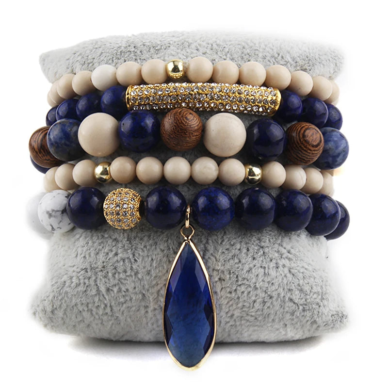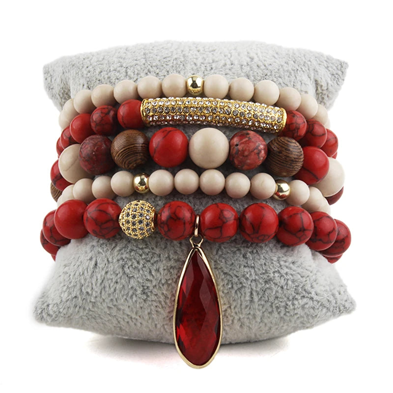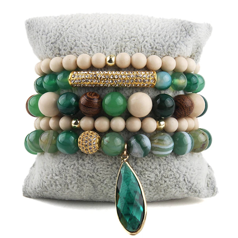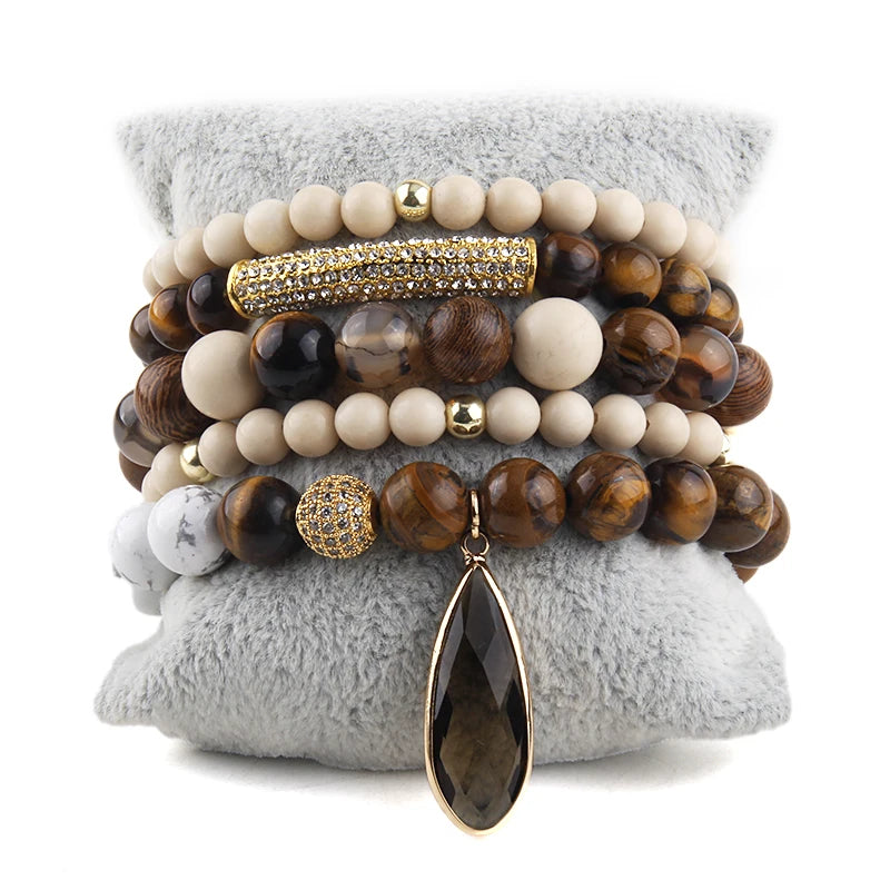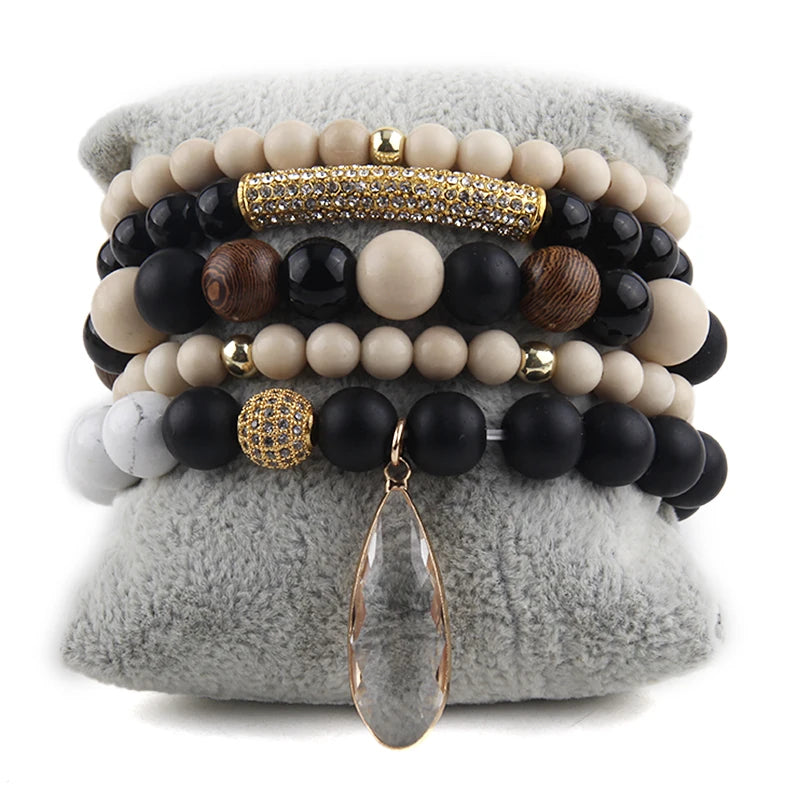 Bohemian Stone Beaded 5pc Stack Bracelets Set