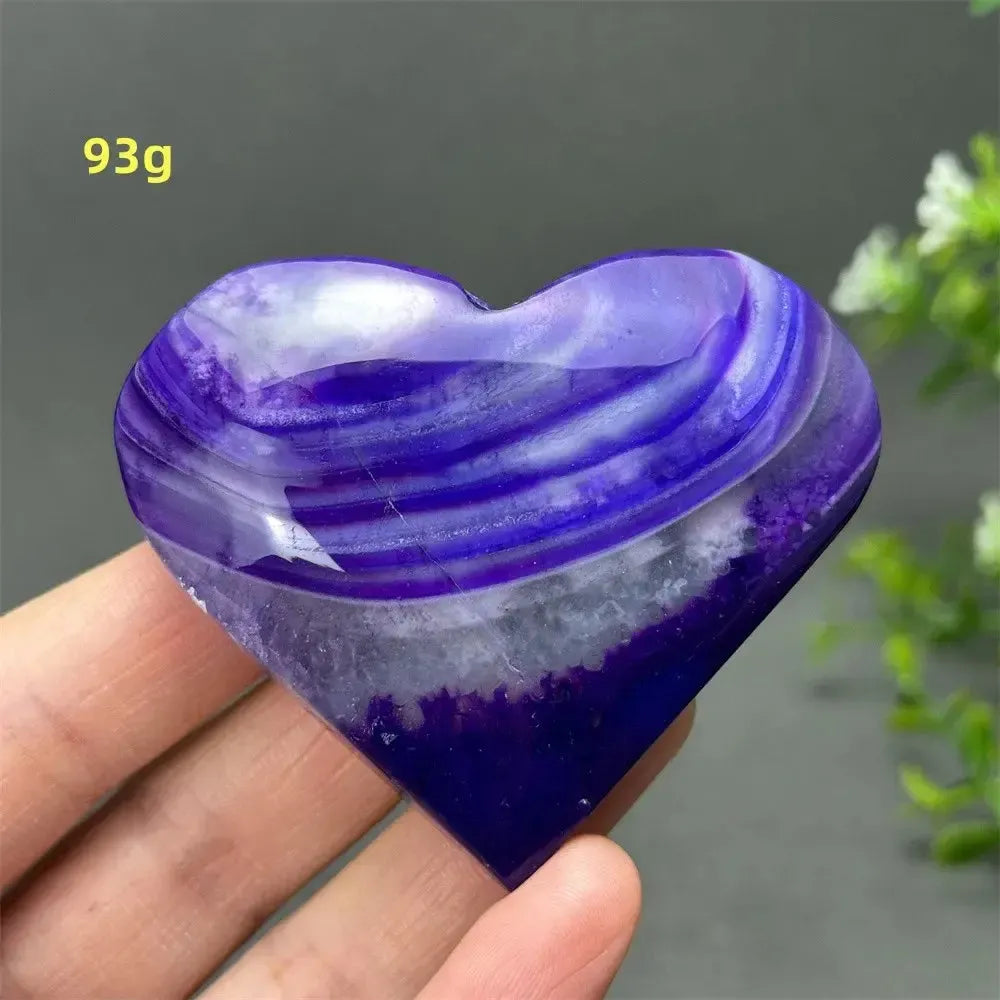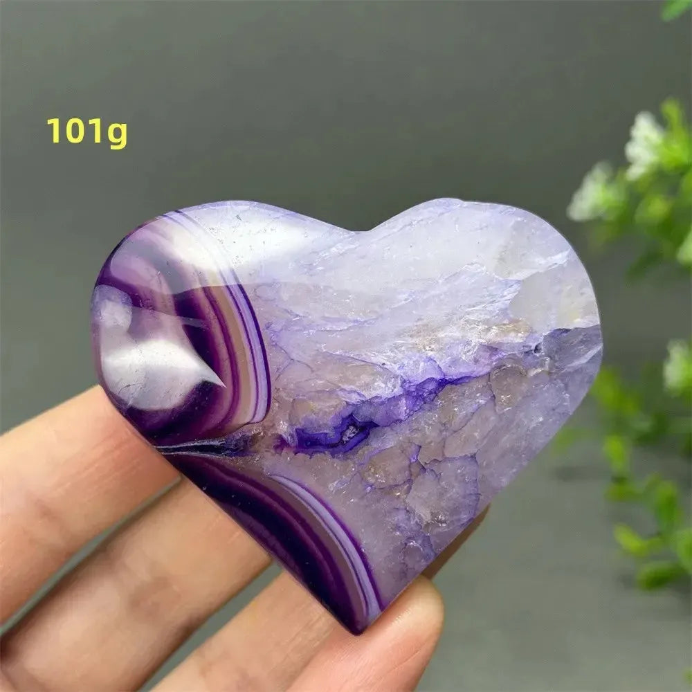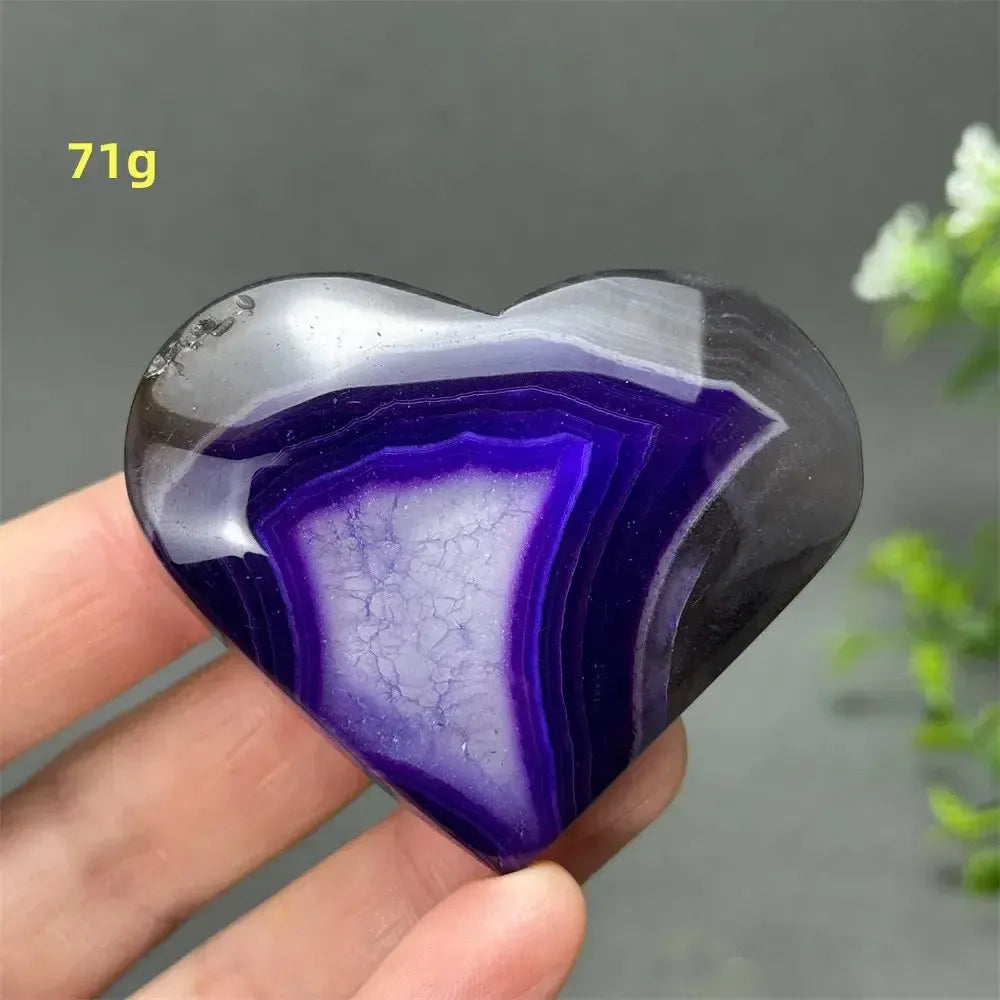 Carved into a heart shape, this crystal symbolizes love, harmony, and emotional healing. It is ideal for altar spaces, feng shui placements, meditation rooms, or as a thoughtful spiritual gift. Each piece is unique in color and banding, making it both a healing tool and a decorative treasure for collectors and energy workers alike.
