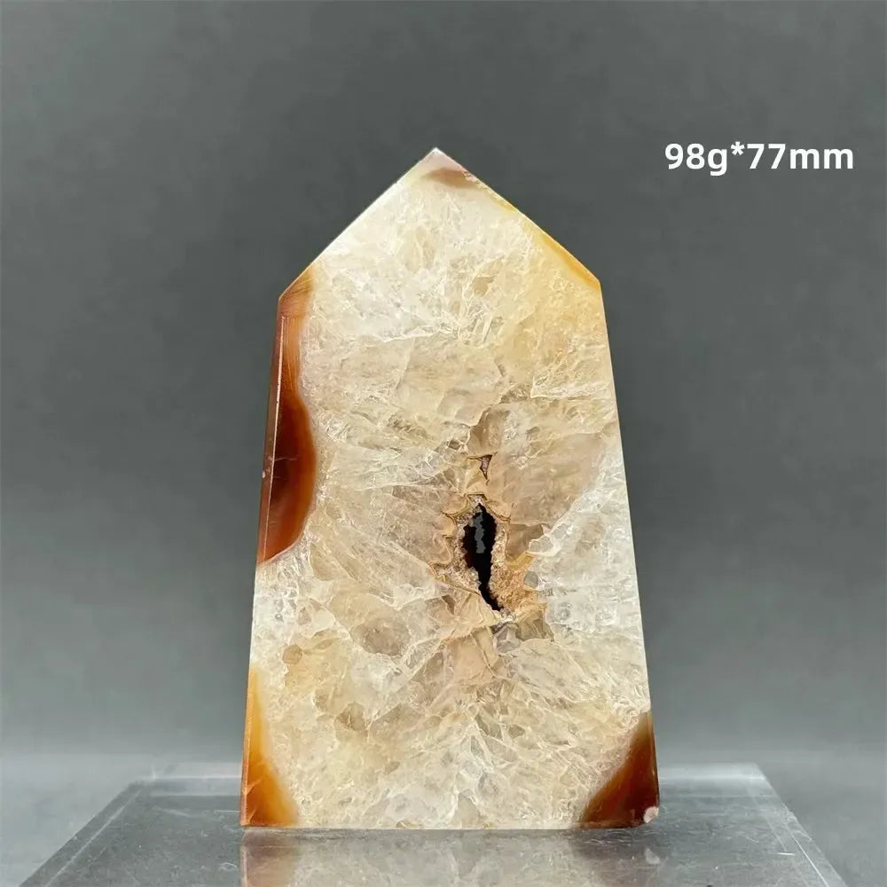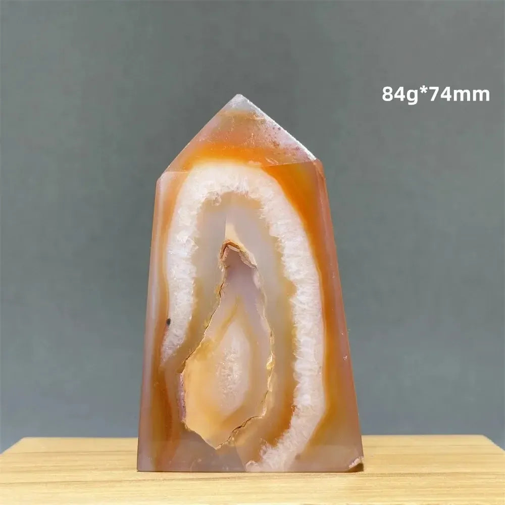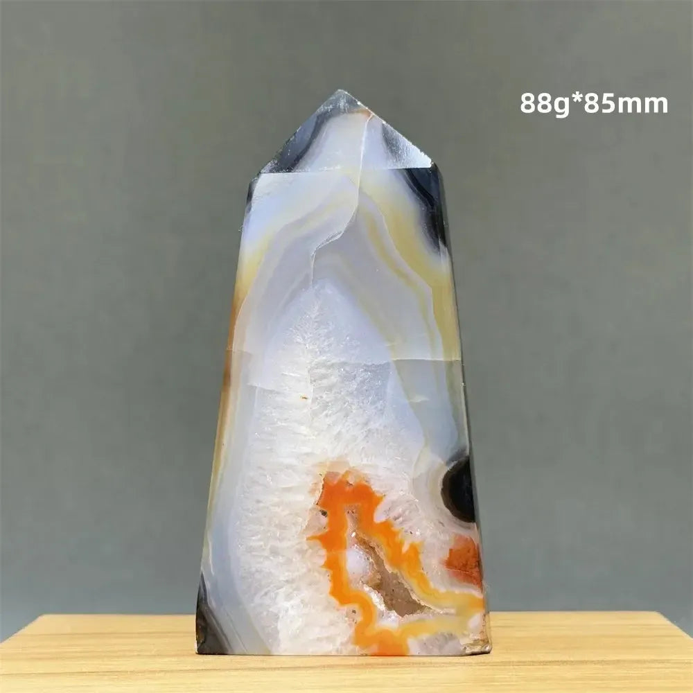 Sardonyx is known for its grounding strength and protective energy. It promotes discipline, confidence, and stability while helping to dispel negativity. These towers are excellent tools for spiritual focus, intention setting, and adding a refined, earthy presence to any crystal collection.