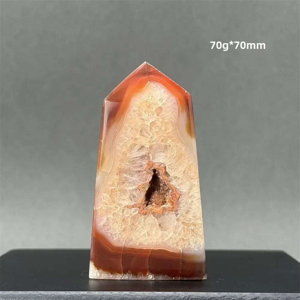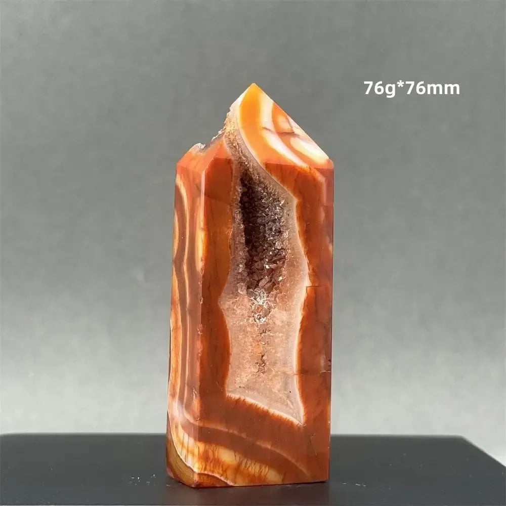 These Sardonyx Agate Towers showcase striking bands of black, red, and white that naturally form within this powerful variety of agate. Each tower is expertly polished to enhance its bold contrast and layered beauty, making it an exceptional piece for décor, meditation, or energy work.