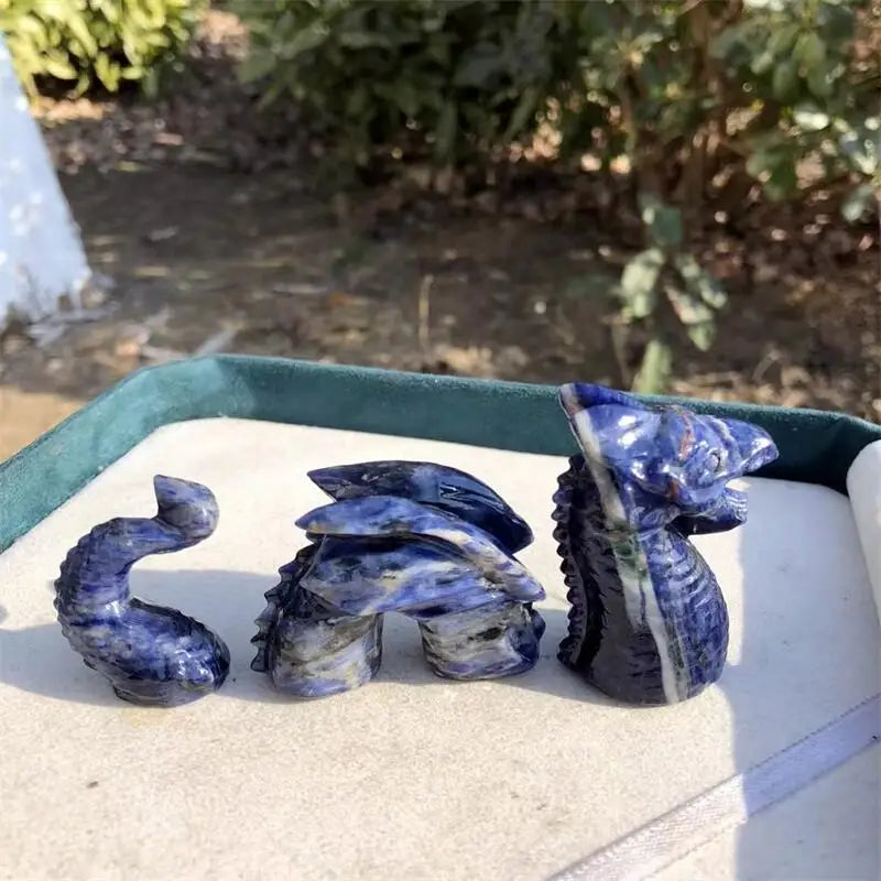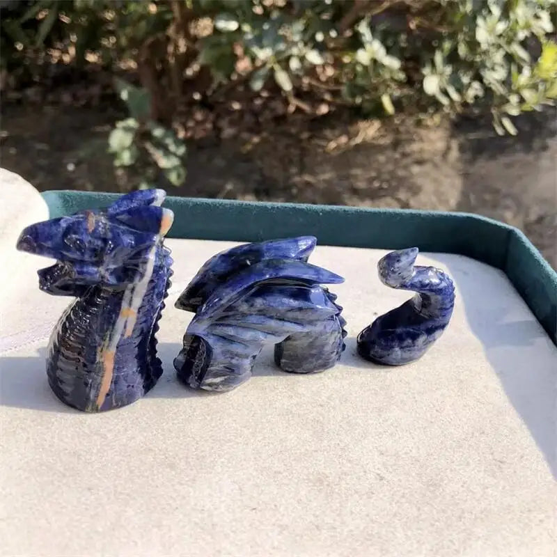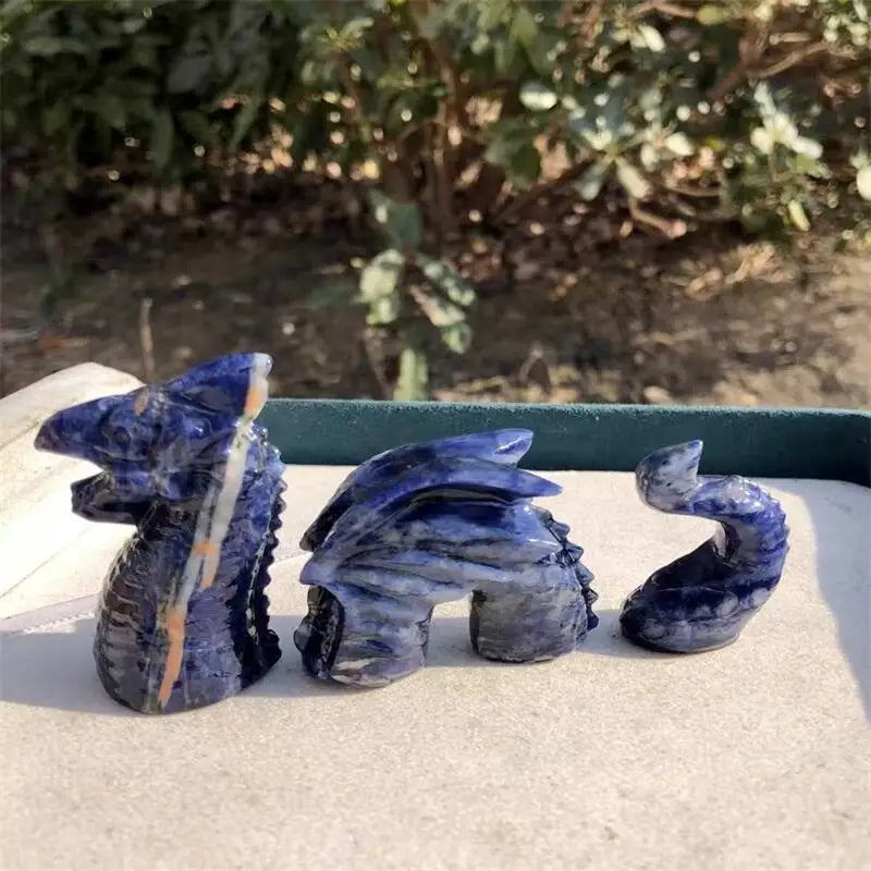 Sodalite is known for enhancing intuition, mental clarity, and calm energy. Combined with the dragon motif, this carving symbolizes strength, protection, and positive energy flow. Perfect for Feng Shui displays, meditation areas, or as a collector’s piece, it brings both aesthetic appeal and meaningful energy into any space.
