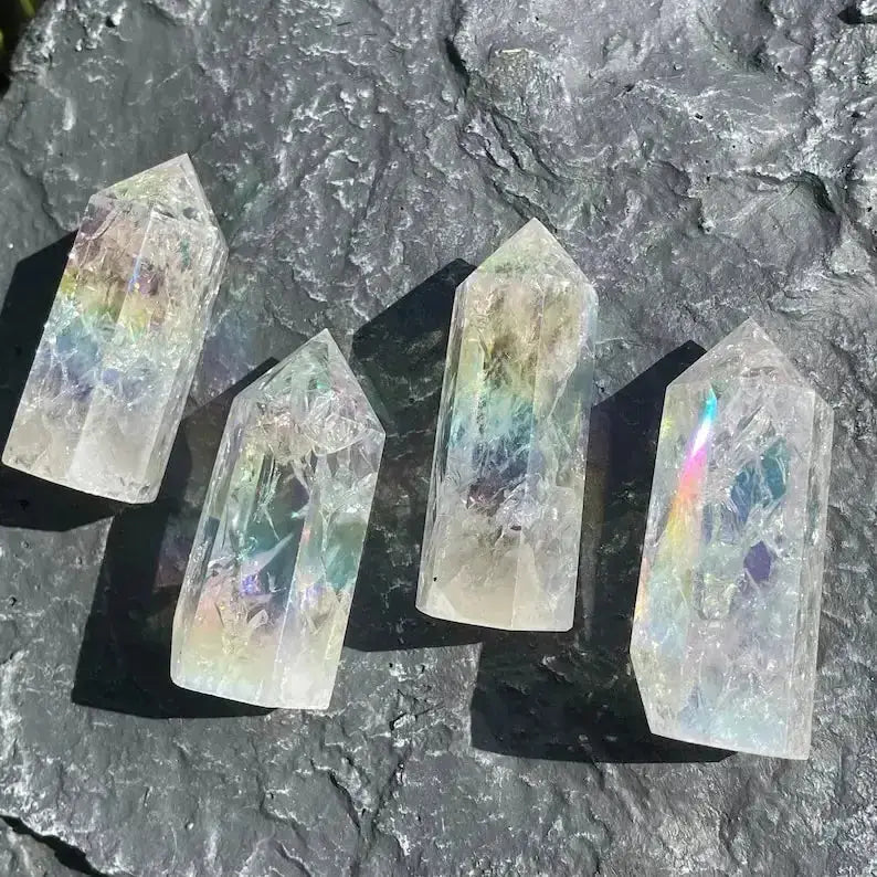 Collectors treasure Angel Aura Quartz Towers for their radiant colors, high vibrational energy, and captivating presence.