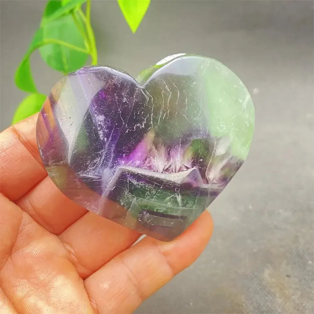 This beautifully polished Feather Fluorite heart brings a spectrum of calming colors to your crystal collection. Known for its stunning bands of purple, green, blue, and clear tones, each Fluorite heart is a natural work of art that captures light and energy in mesmerizing ways.