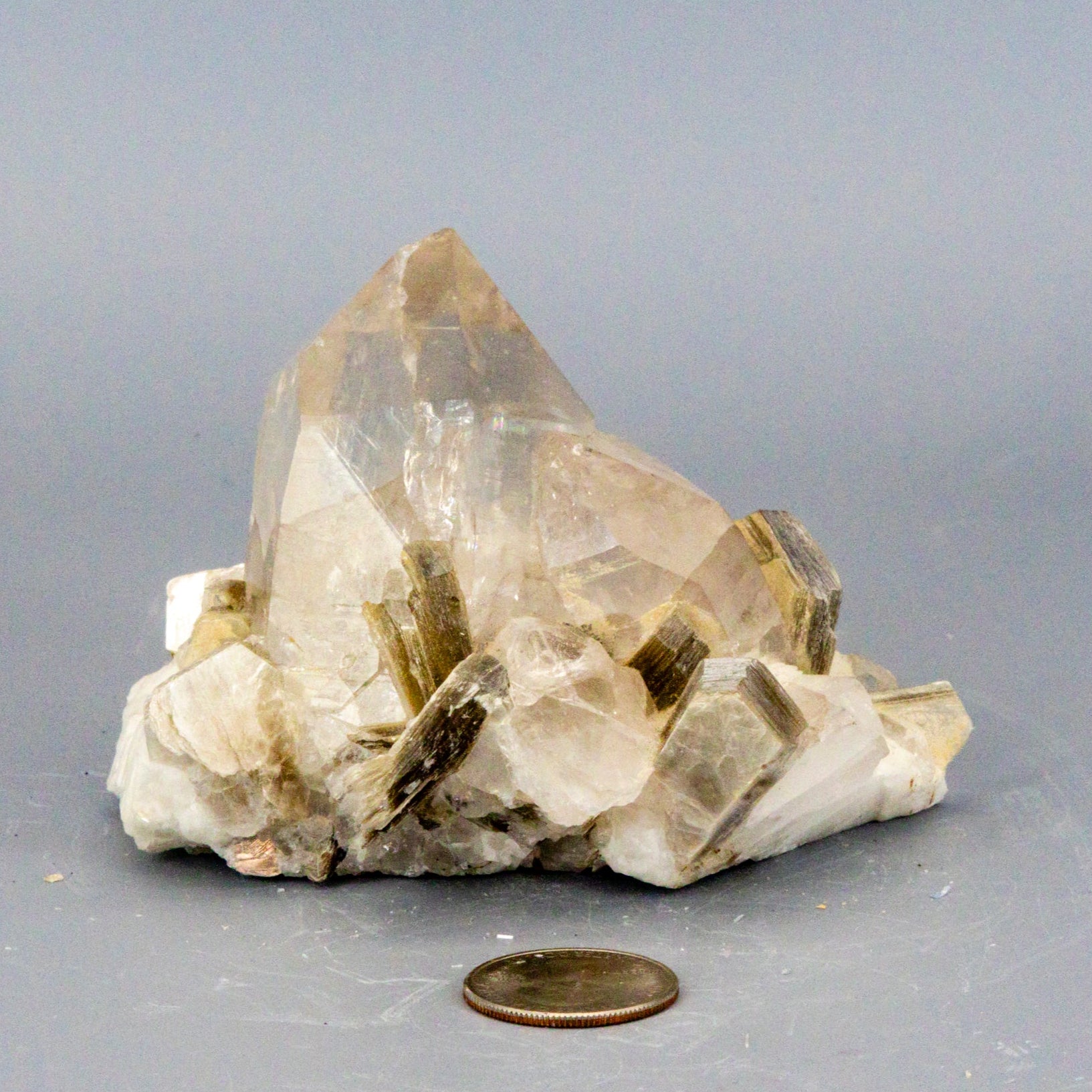 Amazing Clear Quartz Cluster with Book Muscovite (Mica) On Calcite "Rare AAAA+"