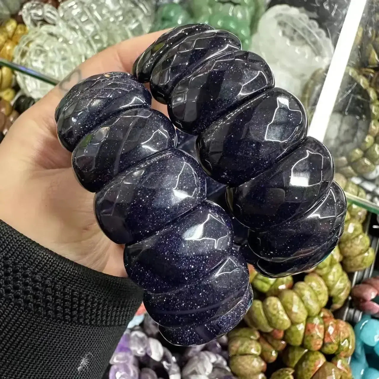 Big Cuff Bangle Crystal Bead Bracelets-Bracelets-Ali-Blue Sandstone-19cm-Crystal Destiny