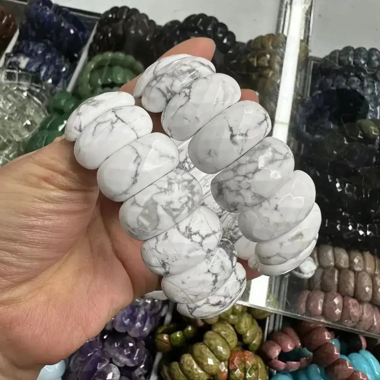 Big Cuff Bangle Crystal Bead Bracelets-Bracelets-Ali-Howlite-19cm-Crystal Destiny