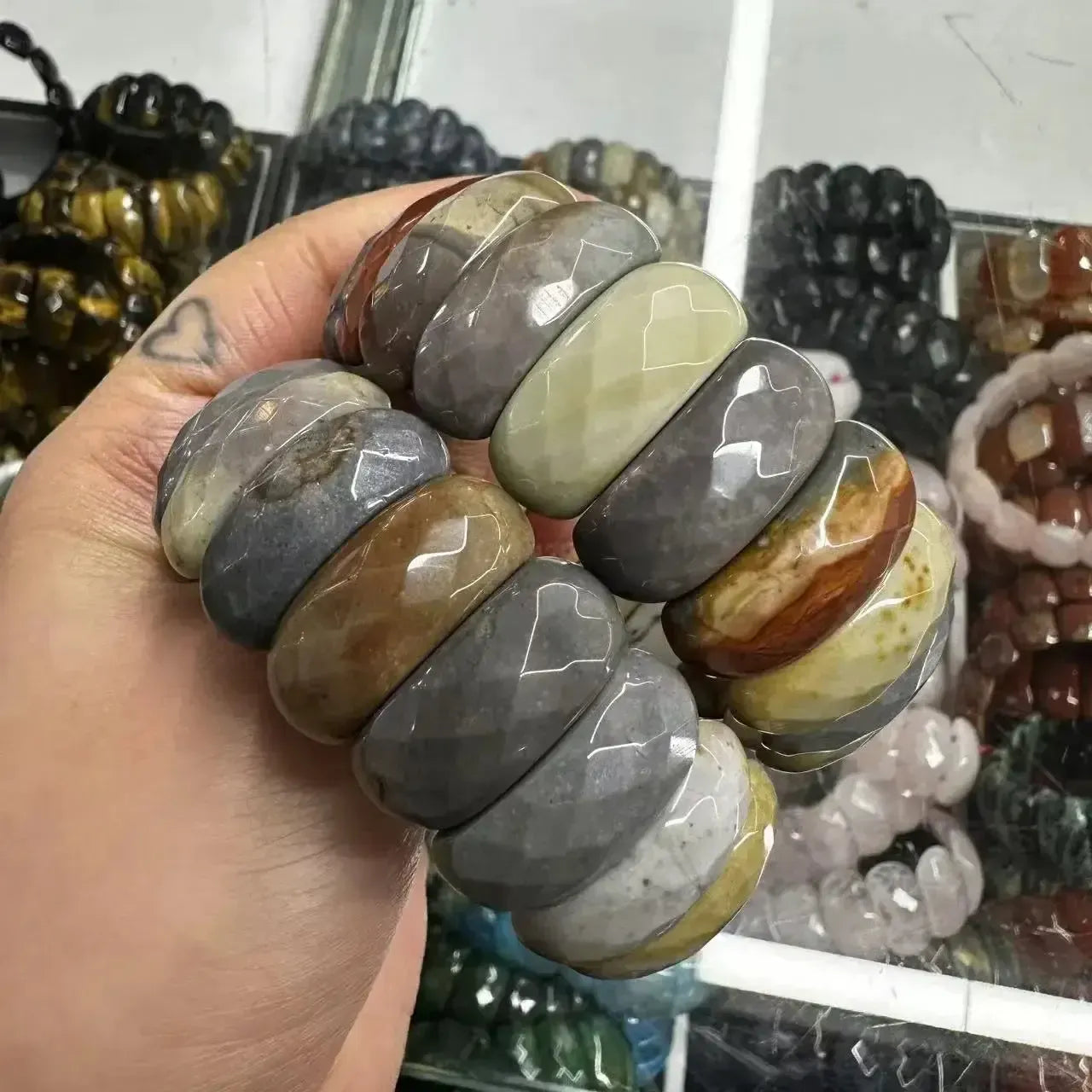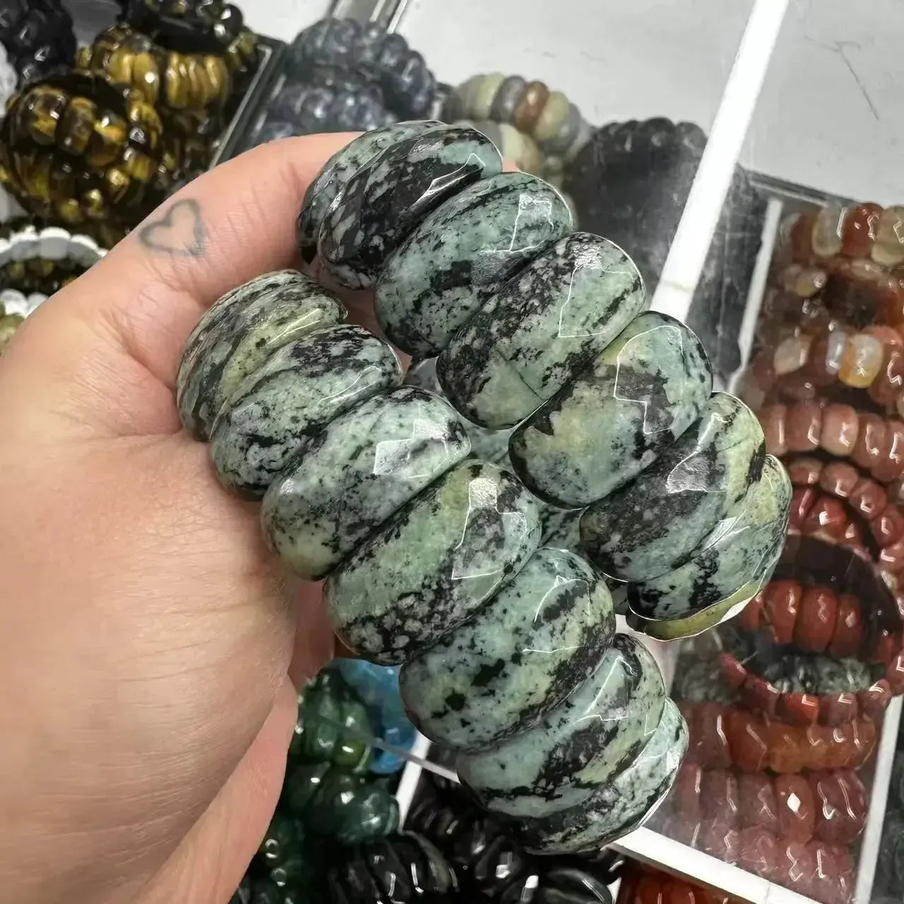 Big Cuff Bangle Crystal Bead Bracelets-Bracelets-Ali-Rainforest Agate-19cm-Crystal Destiny