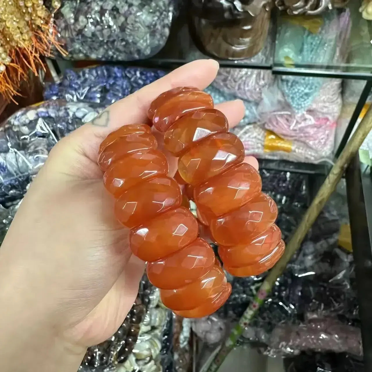 Big Cuff Bangle Crystal Bead Bracelets-Bracelets-Ali-Red Agate-19cm-Crystal Destiny