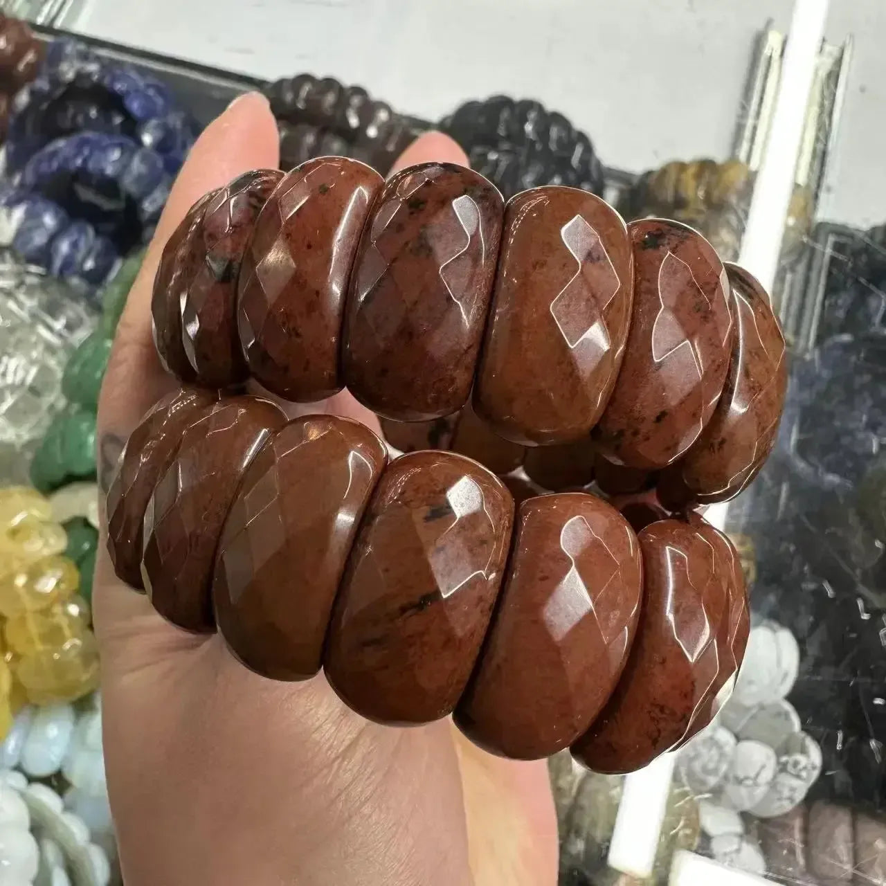 Big Cuff Bangle Crystal Bead Bracelets-Bracelets-Ali-Red Obsidian-19cm-Crystal Destiny