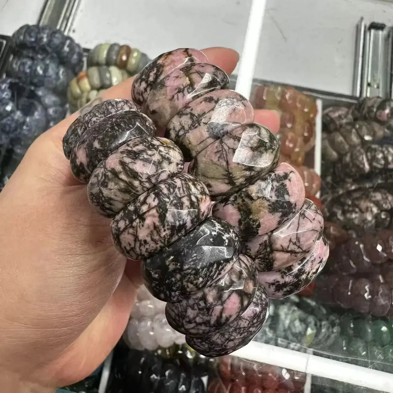 Big Cuff Bangle Crystal Bead Bracelets-Bracelets-Ali-Rhodonite-19cm-Crystal Destiny