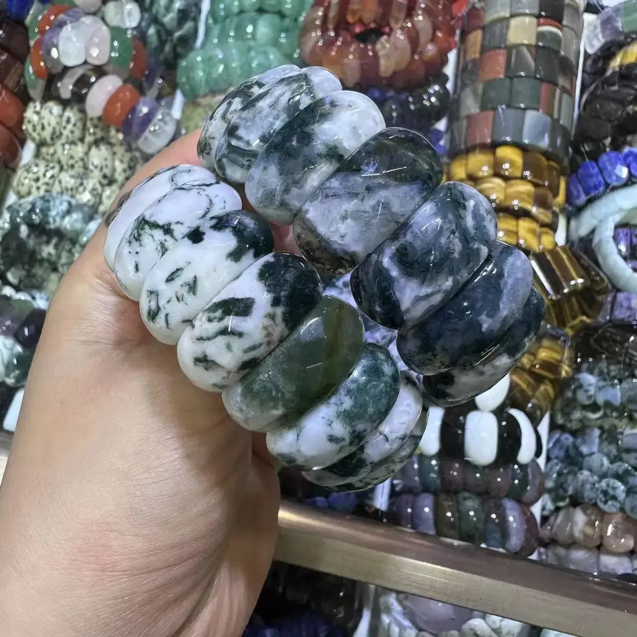Big Cuff Bangle Crystal Bead Bracelets-Bracelets-Ali-Tree Agate-19cm-Crystal Destiny