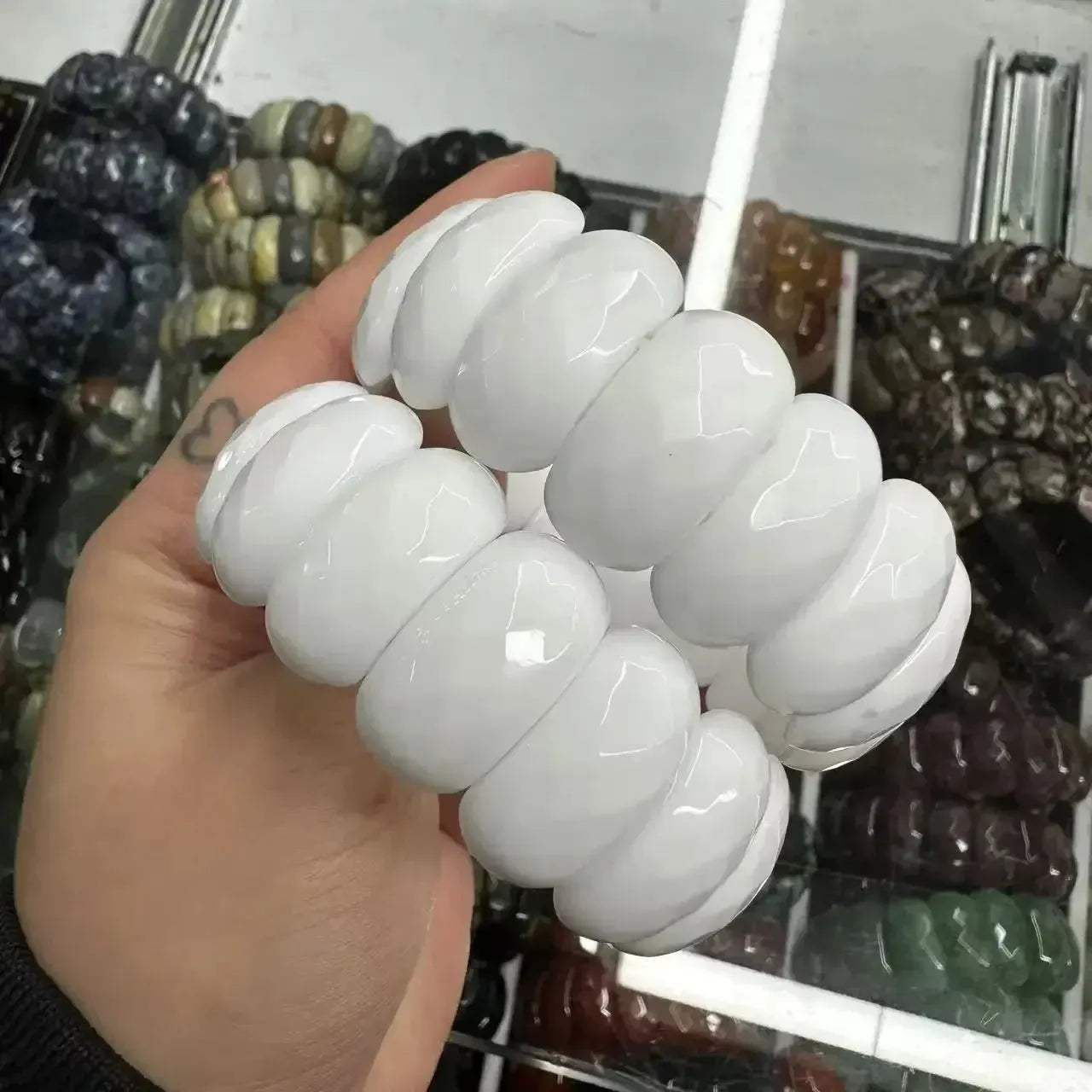 Big Cuff Bangle Crystal Bead Bracelets-Bracelets-Ali-White Agate-19cm-Crystal Destiny
