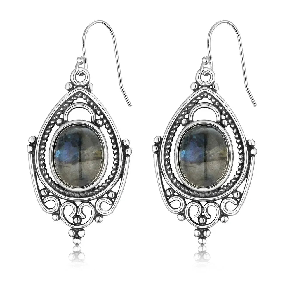 Sterling Silver Oval Crystal Earrings-Earrings-Ali-Labradorite-Crystal Destiny