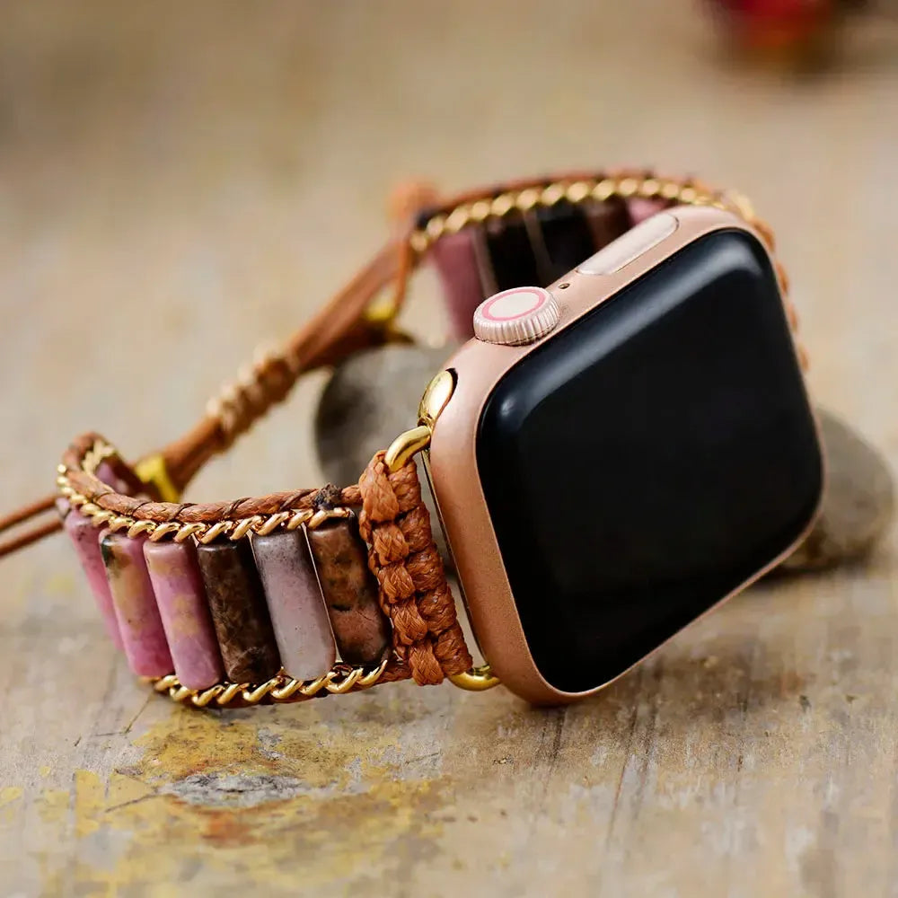 Natural Stone Apple iWatch Band 38-49mm Bohemian Beaded-Bands-Ali-Black Rhodonite-Woman-38-41MM Watch Plate-Crystal Destiny